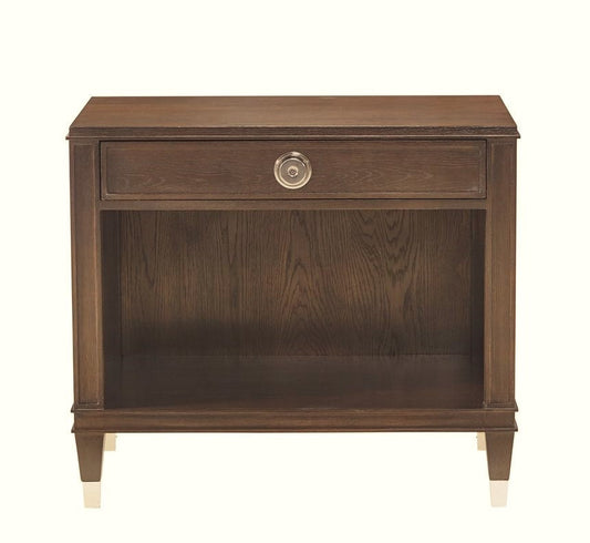 Just add candlelight. With clean lines and a creamy white finish accented with champagne and silver tipping, the Anastasie nightstand is refined elegance with a whisper of Hollywood glamour, As practical as it is pretty, there is a power bar with 3 electrical outlets and one live USB port, along with a light underneath with a three-intensity touch activation.